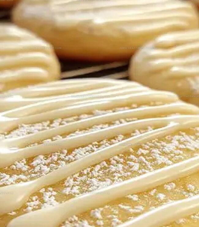 - While cookies remain warm, generously drizzle approximately one teaspoon of glaze across each cookie’s surface.