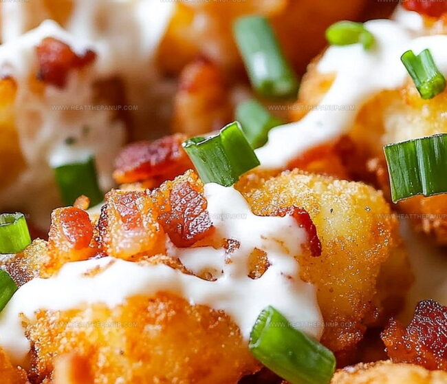 Crispy golden tater tots smothered in melted cheese and turkey bacon deliver an irresistible comfort food experience that will make taste buds dance with joy.