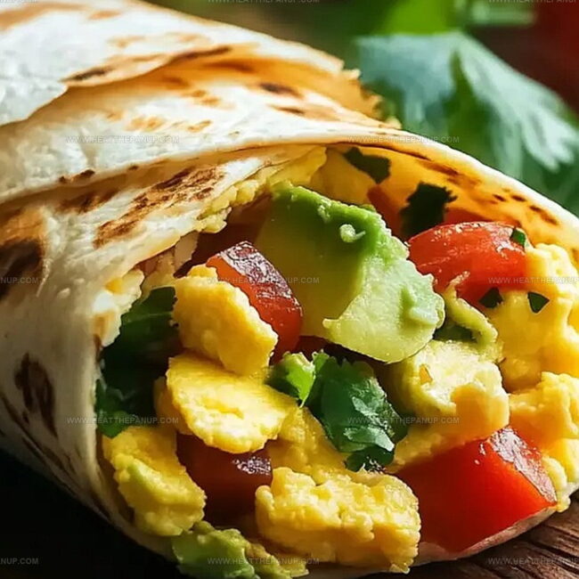 - Construct the burrito by layering fluffy scrambled eggs onto a low-carb tortilla, arranging sautéed vegetable medley atop the eggs.
