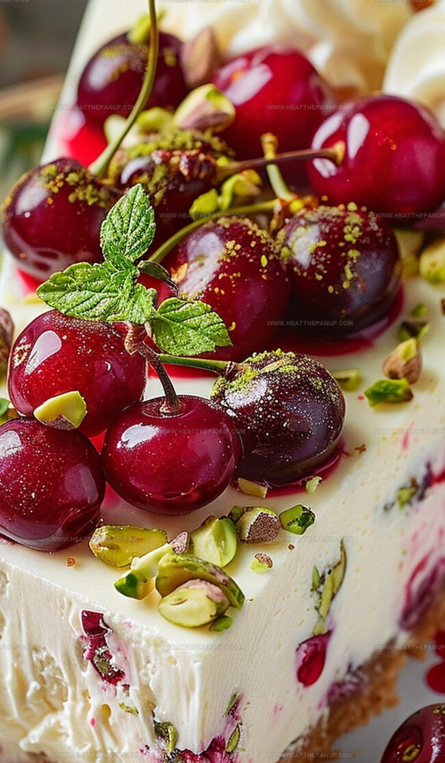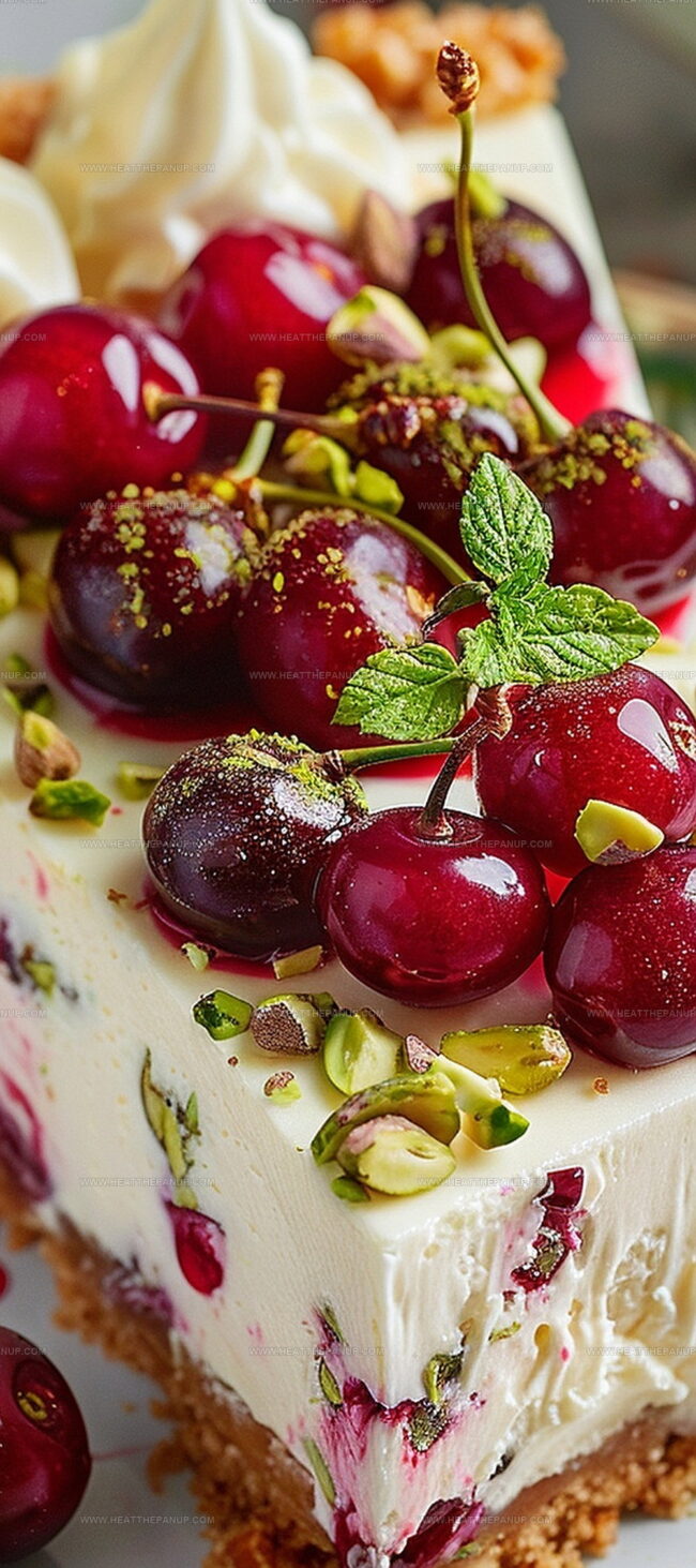 Cheesecake That Mixes Cherry, Pistachio, and Citrus Delight
