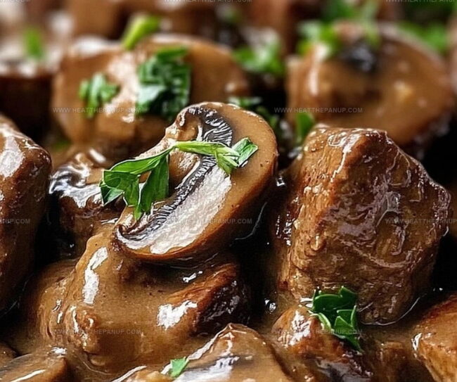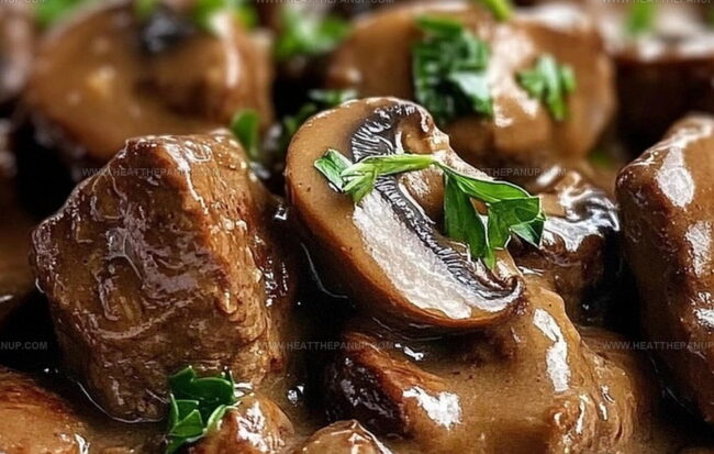 Succulent beef tips swim in rich mushroom gravy, creating a comforting classic that promises pure culinary bliss. Hearty flavors and tender meat invite warm memories of home-cooked goodness you’ll savor with every delicious bite.