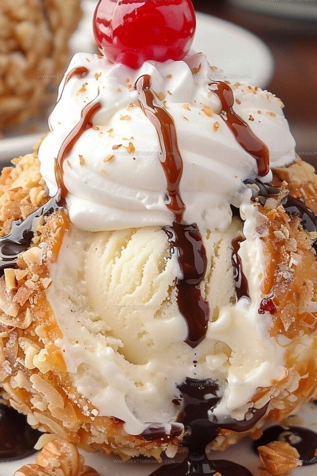 Creamy vanilla ice cream wrapped in a crispy, golden-brown crunch defines this irresistible Mexican fried ice cream that sends taste buds on a delightful adventure.
