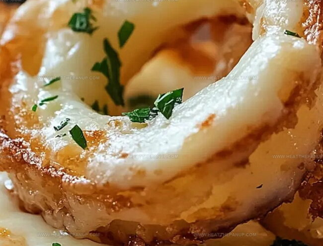 Savory mozzarella-stuffed onion rings drip with golden garlic butter, creating an irresistible appetizer that blends crispy textures and rich flavors. Cheese lovers will dive into this indulgent snack that promises a delightful crunch with each delectable bite.