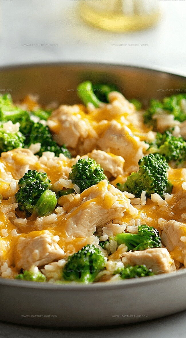 Comfort meets convenience in this one-pan cheesy chicken broccoli and rice masterpiece, combining hearty ingredients for a wholesome meal. Savory chicken, tender broccoli, and creamy cheese blend perfectly, creating a satisfying dinner solution you’ll crave again and again.