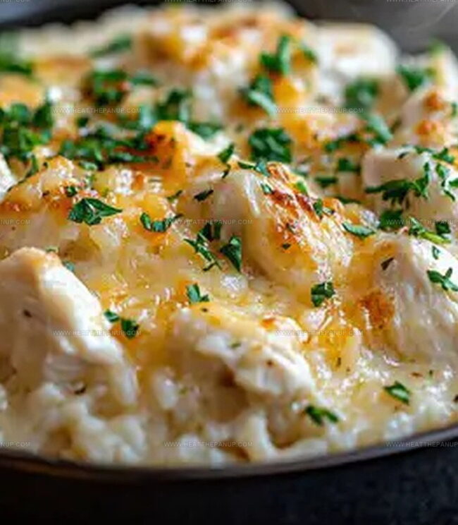 Creamy cheese sauce mingles perfectly with tender chicken and fluffy rice grains.