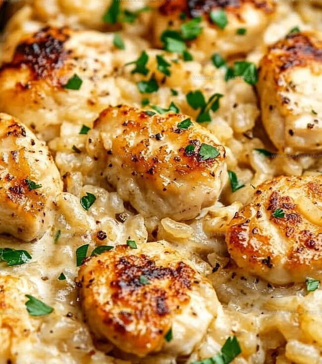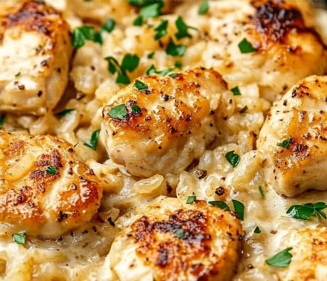 - Conduct a final taste assessment, adjusting salt and pepper levels to personal preference. Plate the creamy, herb-infused chicken and rice, presenting a comforting one-pan culinary experience ready for immediate enjoyment.
