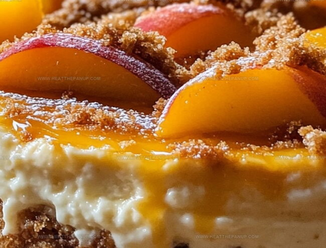 Rich layers of Southern comfort mesh in this peach cobbler cheesecake, blending creamy cheesecake with warm cinnamon-spiced peaches. Delicate graham cracker crust and golden streusel topping invite sweet indulgence that connects home-style charm with elegant dessert crafting.