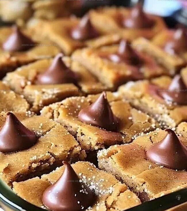 Sweet, nostalgic memories of classic peanut butter blossom bars dance across familiar flavor profiles in this delightful dessert. Rich chocolate kisses nestled atop buttery peanut butter squares create a perfect marriage of comforting childhood treats you’ll savor to the last crumb.