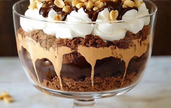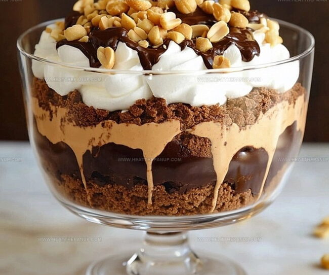 Layers of indulgent Peanut Butter Fudge Brownie Trifle create a delectable dessert masterpiece that promises pure chocolate and peanut butter bliss. Rich chocolate brownies, creamy peanut butter mousse, and silky ganache combine for an irresistible treat you cannot resist.