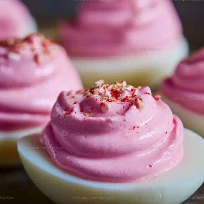Spice-infused perfectly pink deviled eggs bring Mediterranean charm to classic appetizers. Creamy beetroot-tinted filling and elegant garnish create irresistible bites you cannot resist.
