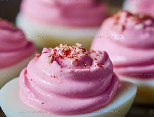 Pink deviled eggs sparkle with unexpected charm on any gathering table.