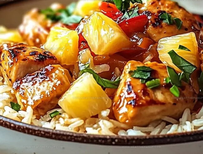 Tropical Hawaiian Pineapple Chicken and Rice brings sweet-savory island flavors to your dinner table. Juicy chicken marinated in tangy pineapple sauce nestles perfectly over fluffy rice, delivering a quick and delicious meal you’ll crave again and again.