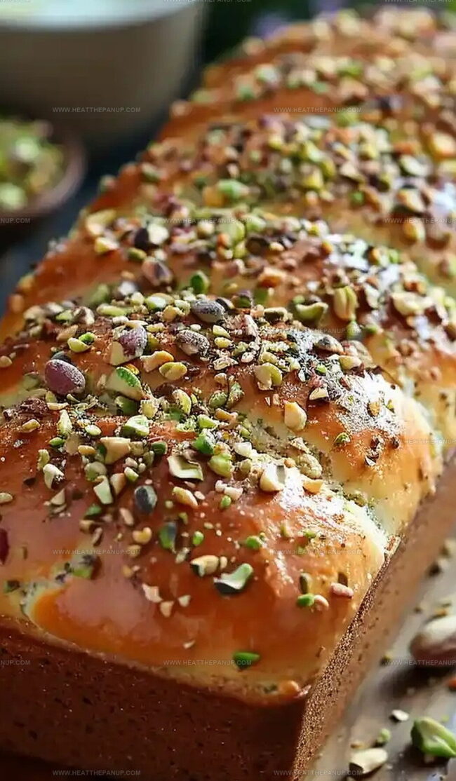 Pistachios add a unique nutty flavor and delightful crunch, creating a perfect balance between sweet and salty in the bread.