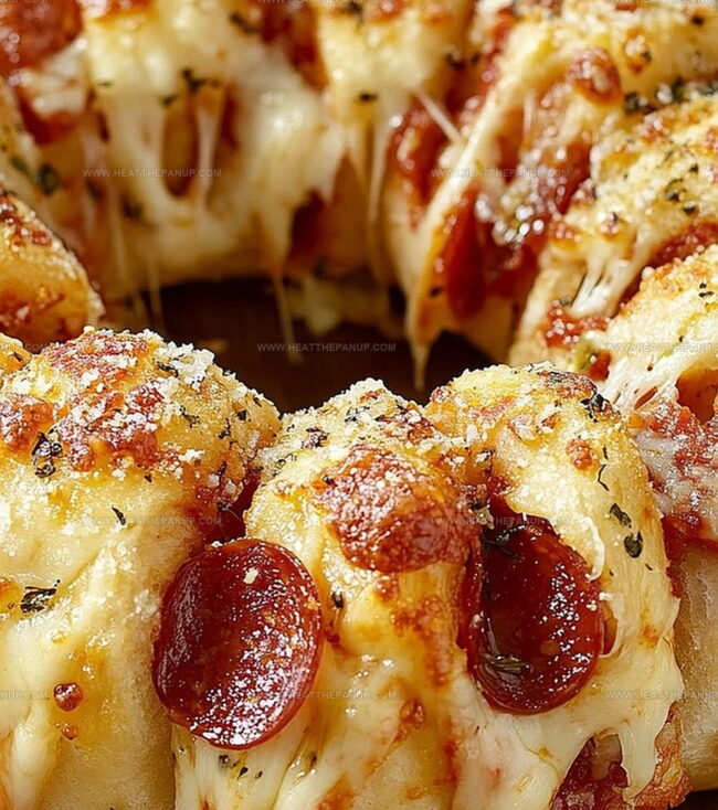 - Carefully transfer the pull-apart pizza bread to a serving plate, accompanied by marinara sauce for dipping, and encourage guests to tear apart and savor the cheesy, pepperoni-infused creation.