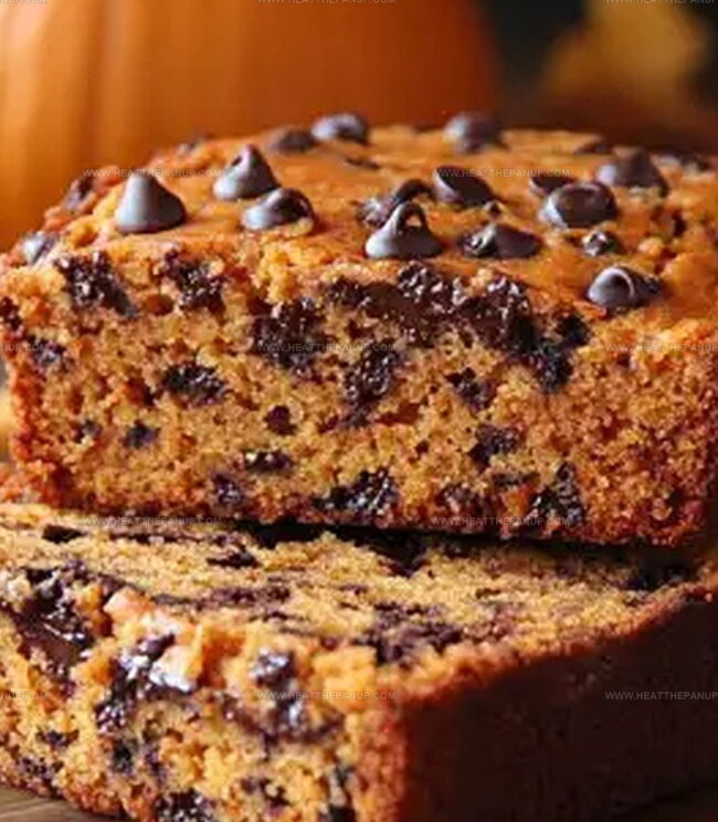 Spiced pumpkin bread with chocolate chips brings autumn’s warmth to your kitchen, melding rich seasonal flavors. Moist crumbs and sweet chocolate morsels create a comforting slice you’ll crave from first bite to last.