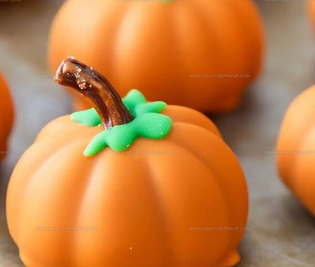 No special skills required! This recipe is beginner-friendly. Anyone can make these cute pumpkin-shaped treats with basic kitchen tools like a food processor and some patience for shaping and decorating.