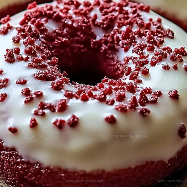 - Embellish the frosted donuts with delicate mini heart sprinkles, adding a playful and festive finishing touch to these decadent red velvet treats.