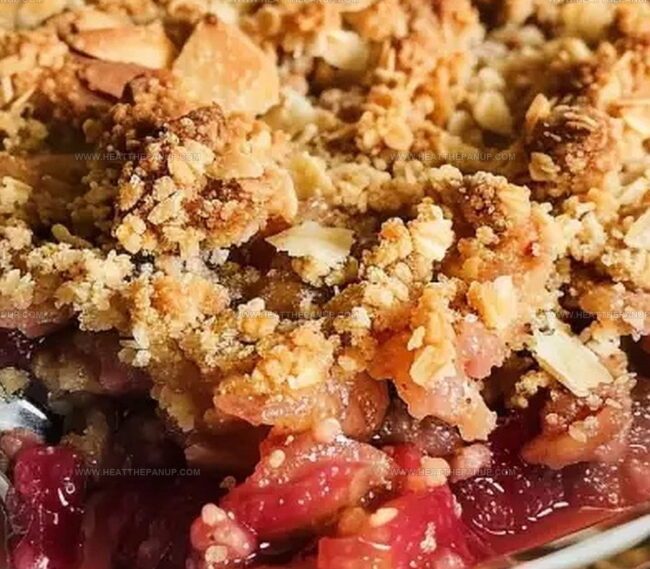 The vibrant pink fruit nestles perfectly beneath a crisp, caramelized topping that sings with warmth and nostalgia.