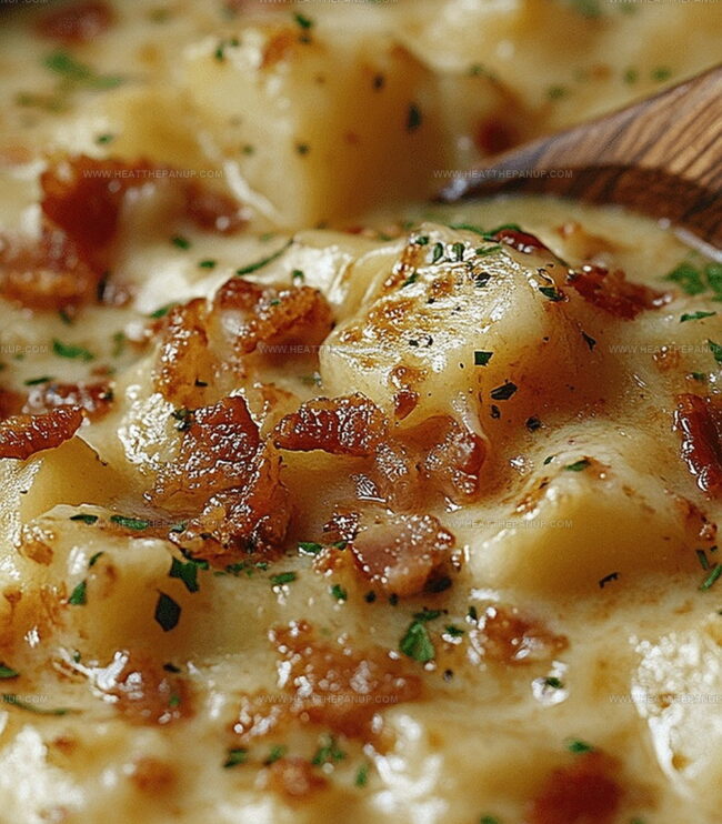 - Diet Adaptation: Substitute regular cheese with low-fat options and use turkey bacon for a lighter version. Replace heavy cream with Greek yogurt or cauliflower puree for a healthier alternative.