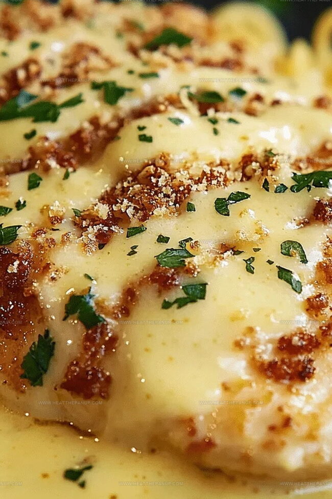 - Once chicken is done, plate immediately and drizzle with the warm, creamy sauce, serving hot for optimal flavor and texture.