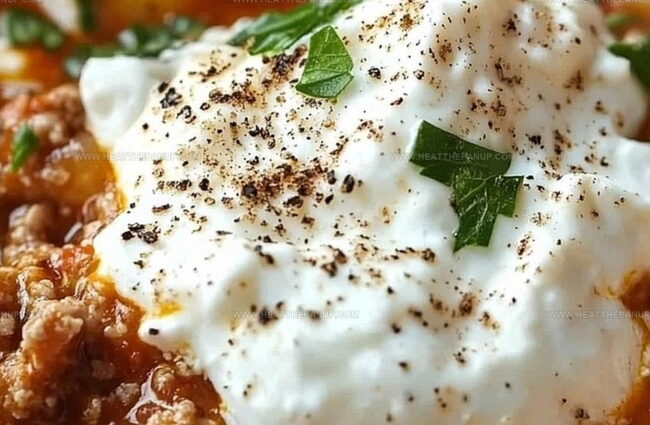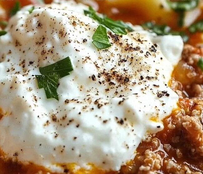 Layers of robust ground beef, tender pasta, and melted cheese swirl together in a savory tomato broth that promises pure culinary satisfaction.