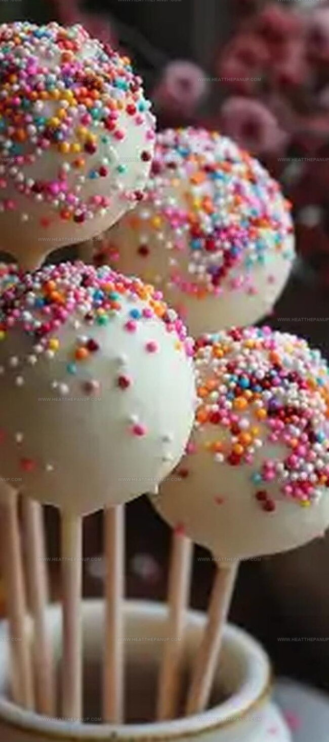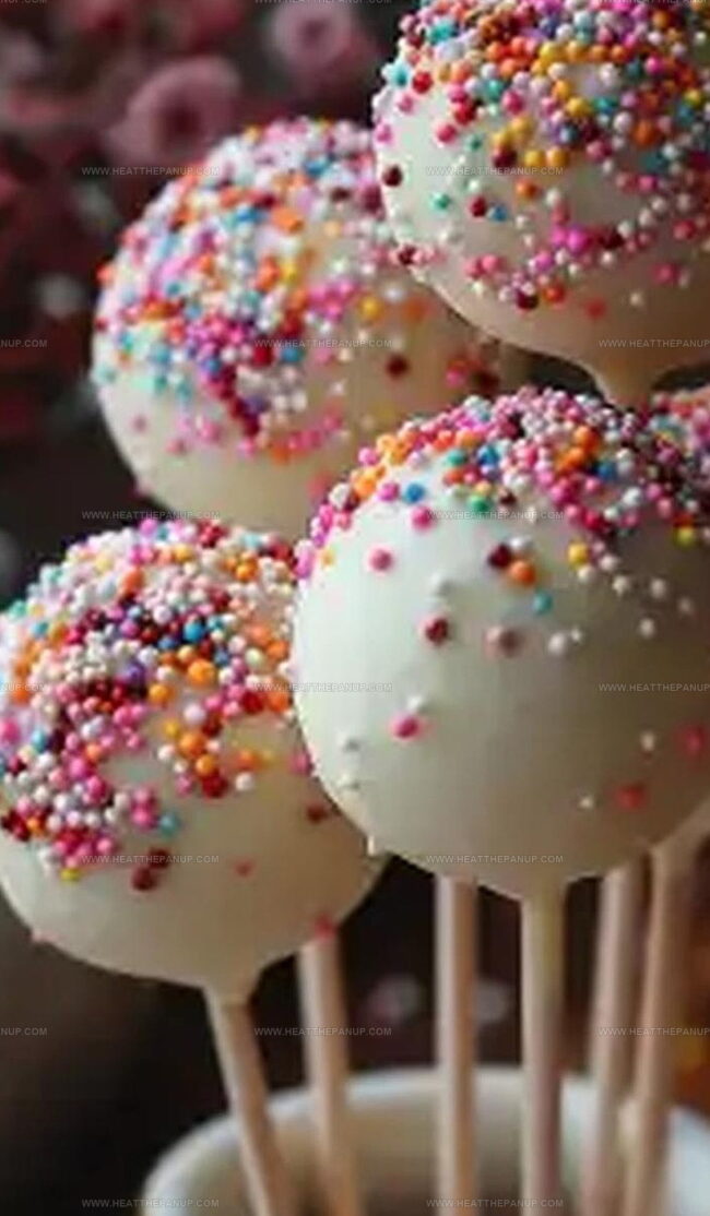 Colorful sprinkles and smooth chocolate coating make these cake pops a visual feast that sparks joy.