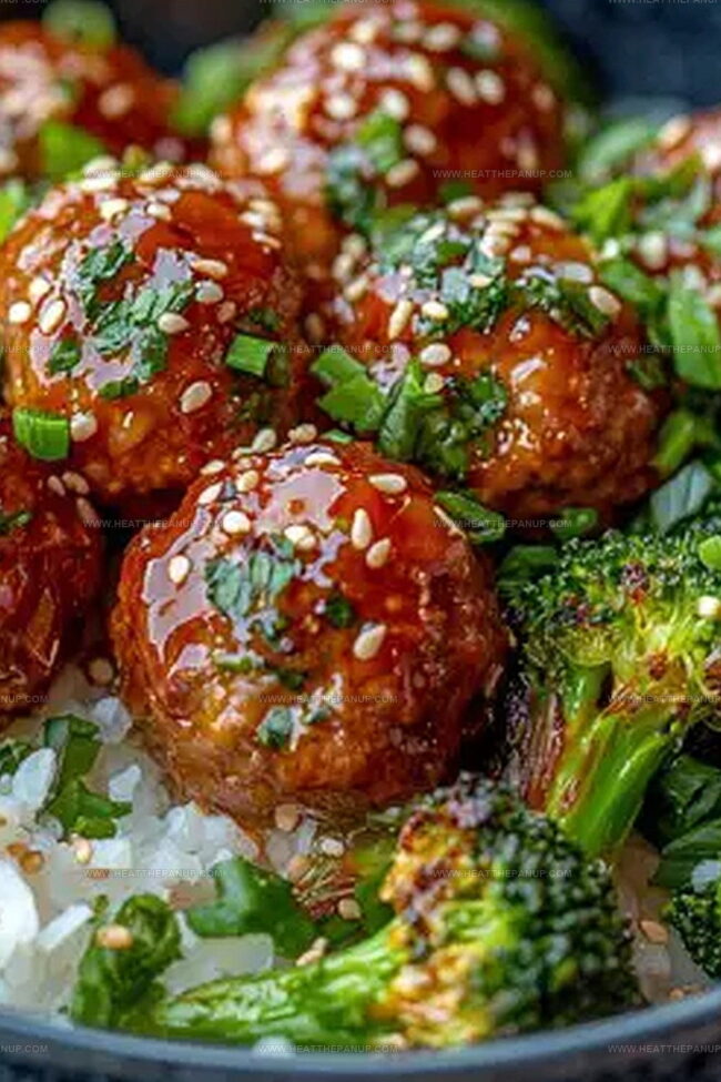 - Plate the sauced meatballs over steamed rice or noodles, accompanied by the roasted broccoli.
