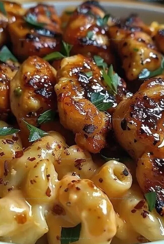 - Plate creamy macaroni as a base, artfully arrange honey pepper chicken strips on top, and garnish with freshly chopped parsley for a pop of color and freshness.