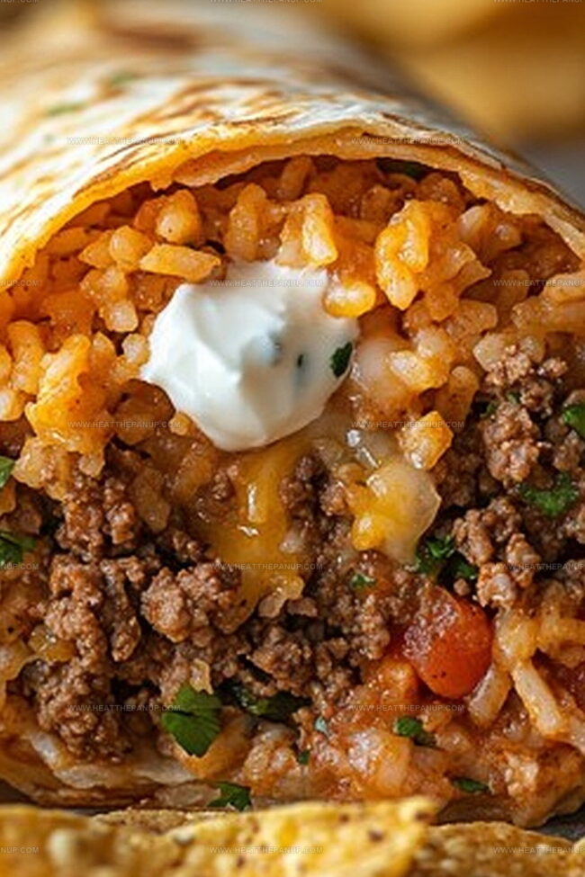 Absolutely! This burrito uses common, affordable ingredients like ground beef, tortillas, rice, and standard cheese. Most ingredients are pantry staples, making it an economical meal that feeds multiple people without breaking the bank.