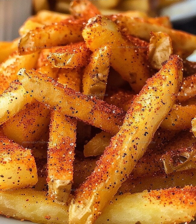 - Sprinkle prepared spice blend over freshly fried potato strips, gently tossing to ensure comprehensive coating.