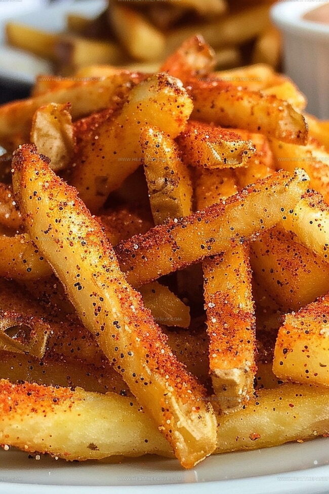 Sprinkle the prepared seasoning blend over the fries, tossing gently to ensure even coating.