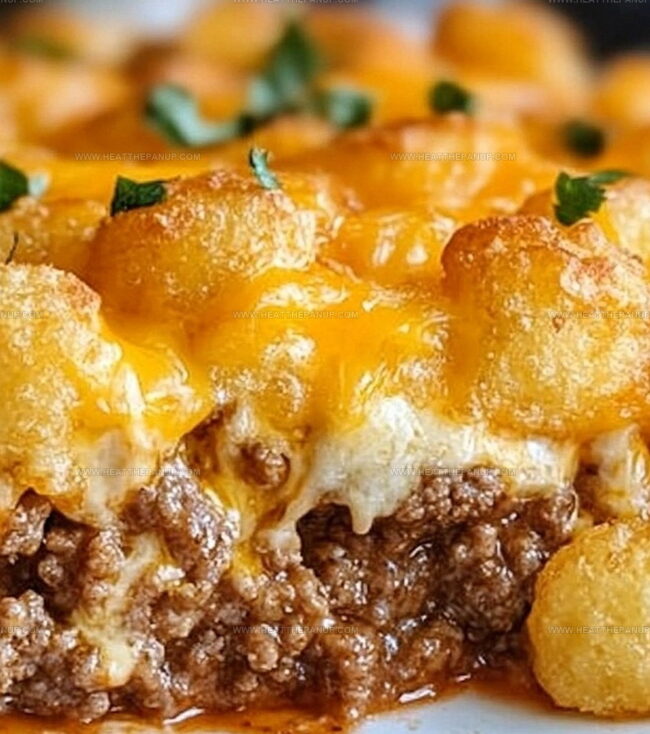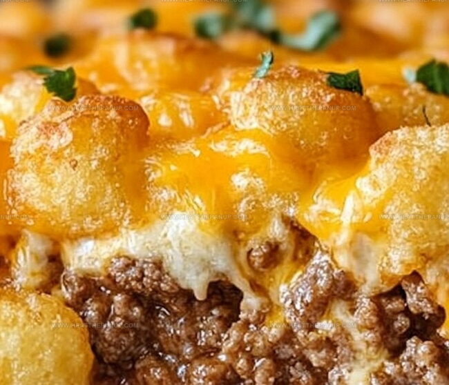 Hearty midwest classic “Tater Tot Casserole” delivers comfort through layers of ground beef, creamy sauce, and crispy potato crowns. Perfect for family dinners, this casserole brings warmth and satisfaction to hungry tables.