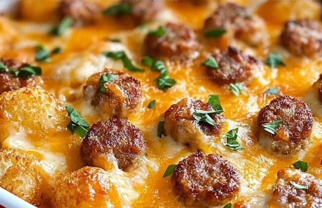 Hearty “tater tot sausage breakfast casserole” brings comfort and flavor to weekend mornings with its satisfying blend of crispy potatoes, savory sausage, and melted cheese. Each forkful promises a delicious start that will energize you through the day.