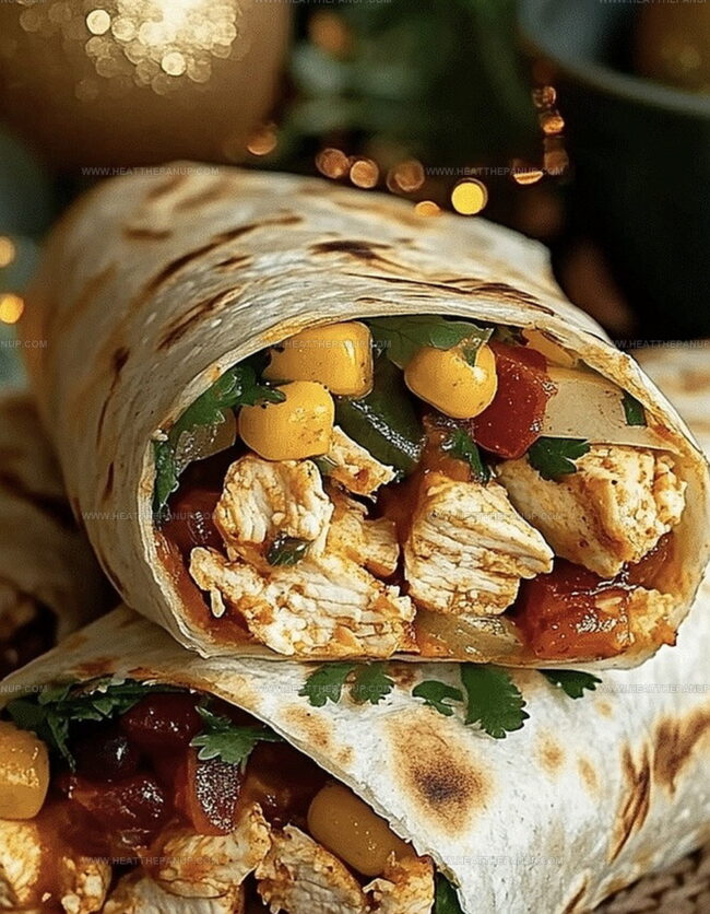 Crisp tortillas hug tender, spiced chicken and vibrant vegetables in a handheld meal perfect for lunch or dinner.