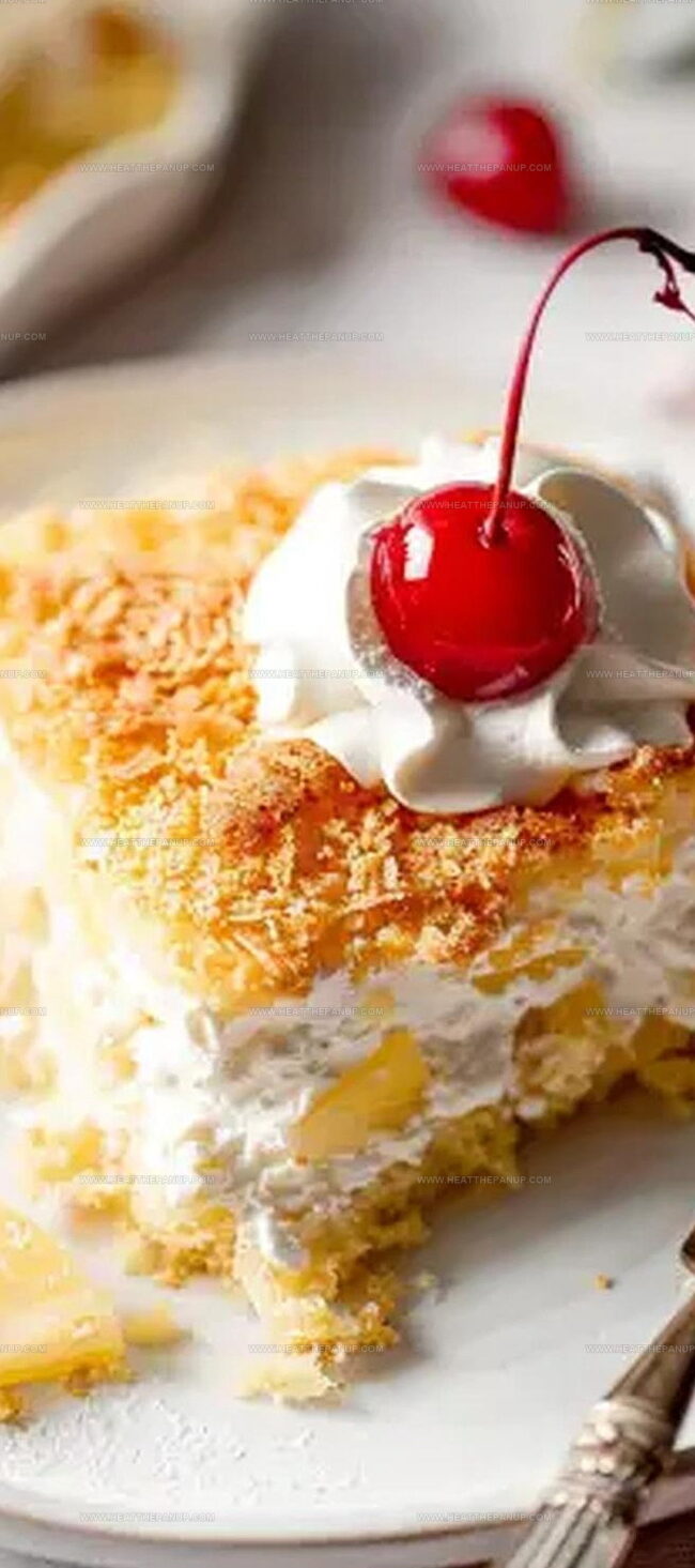 Sprinkle toasted coconut flakes across the top of the whipped cream. Optionally, add maraschino cherries for a pop of color and extra sweetness. Chill the dessert for at least one hour before serving to allow layers to set.