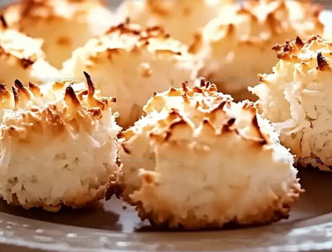 Ensure you beat egg whites to stiff peaks and fold the coconut mixture gently to maintain air. Using a cookie scoop helps create compact, stable shapes.